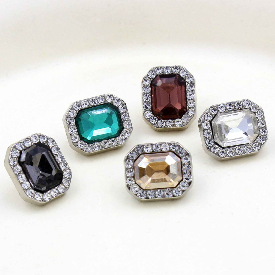 10x12MM Barevné krystalové skleněné obdélníkové kovové knoflíky 50 kusů