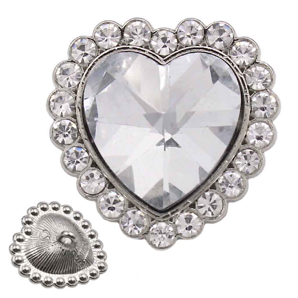 Nádherné knoflíky ve tvaru srdce z krystalových kamínků, kovové, 20 ks