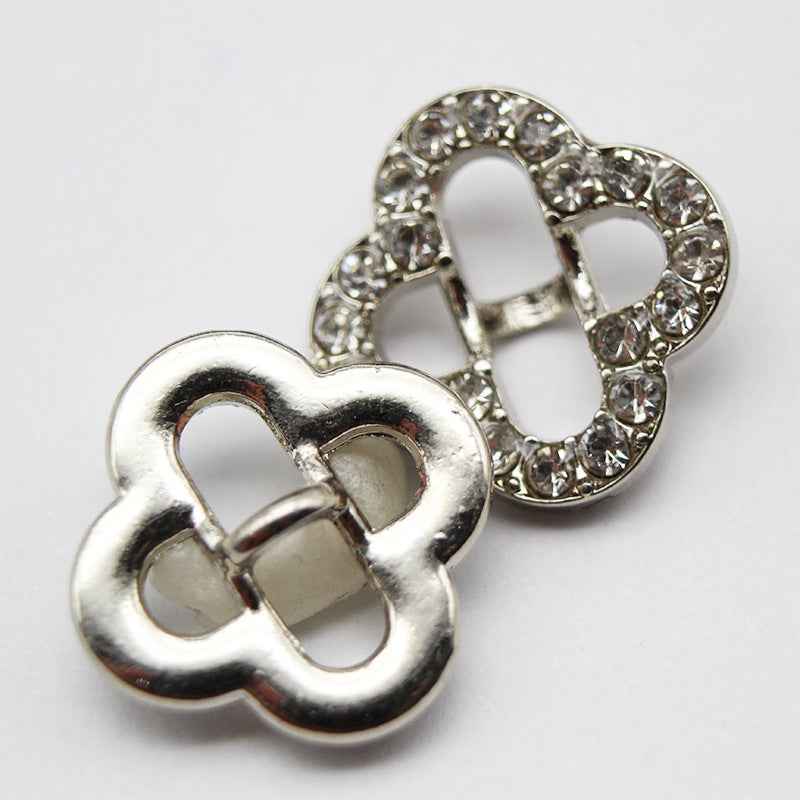 15mm čínské jetelové knoflíky s kamínky na kovovém nožičce 20 ks