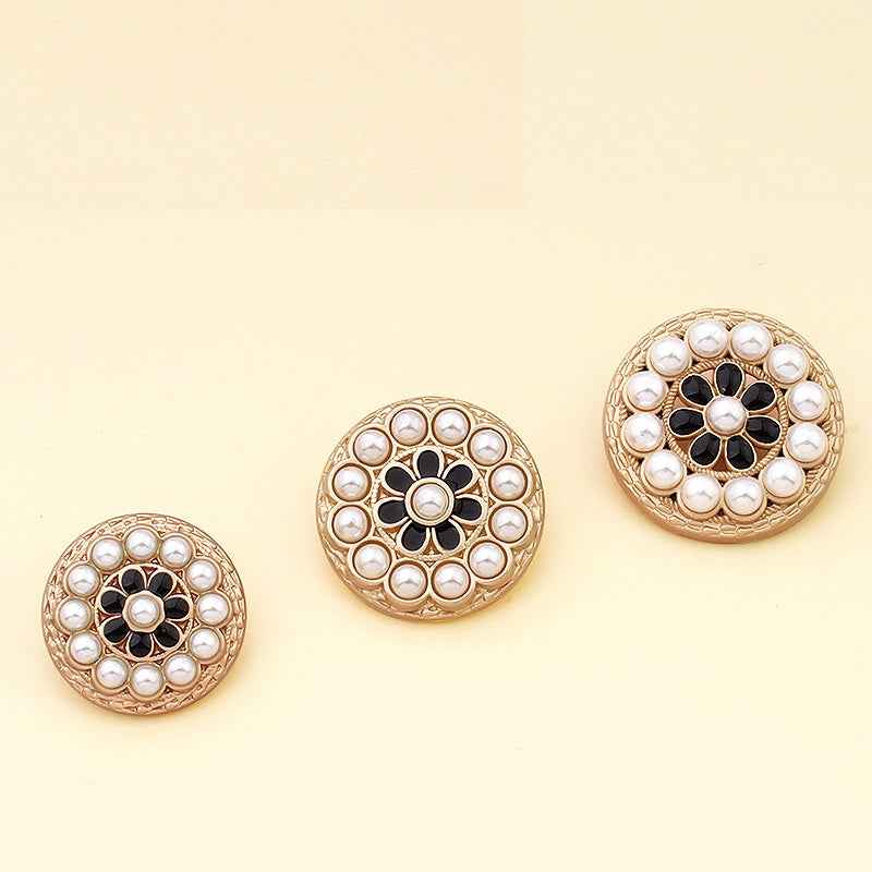 20mm/23mm/25mm Luxusní perlové květinové knoflíky z kovové slitiny na dámské kabáty 18 ks