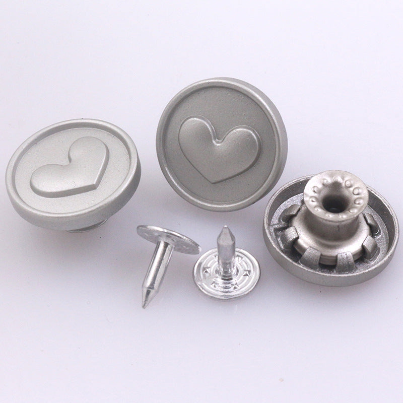 17mm Vintage stříbrný knoflík srdce vzor pro džínovinu 100 ks