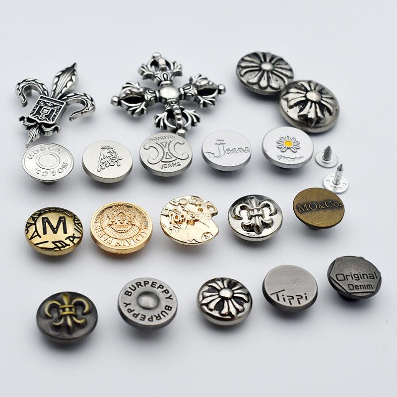 Duté kulaté kovové knoflíky s dříkem pro džínové oblečení 21 kusů