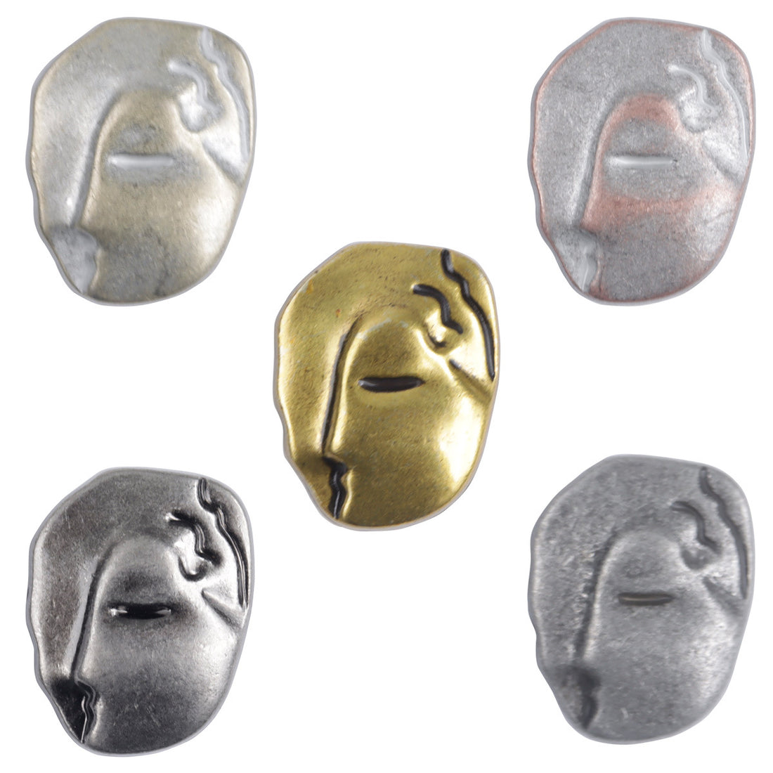 Nepravidelné lidské tváře vintage kovové knoflíky na oblečení, 5 ks