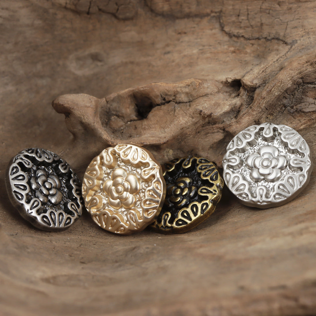 Kulaté vintage bronzové knoflíky s kovovým dříkem Camellia 10 ks