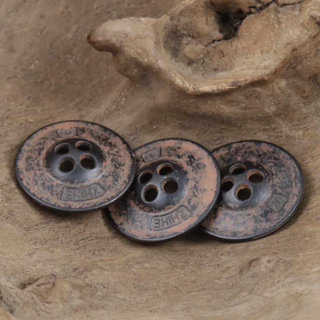 Vintage opotřebované dvoubarevné plechové knoflíky 10 ks