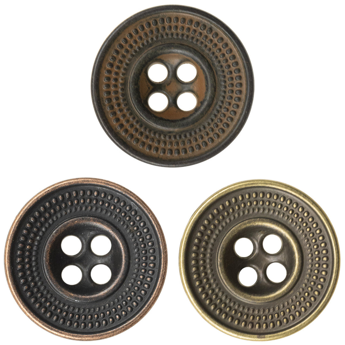 Kulaté 4-dírkové knoflíky ve tvaru pánve pro neformální vintage bundy - 10 ks