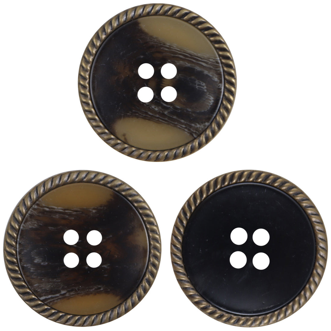 Nepravidelné vintage černo-hnědé rohové knoflíky se 4 dírkami, 10 ks