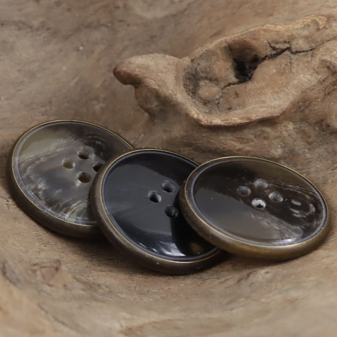 15mm Vintage kulaté 4-dírkové knoflíky z kravího rohu s ohnivým značením, 3 kusy