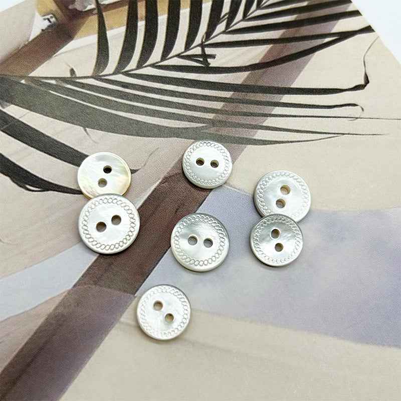 10/11,8mm bílé knoflíky z mušle s dvěma dírkami, kruhový vzor, bílé perleťové knoflíky mabe pro košile, kardigany, trička a zdobení dětského oblečení, 30 kusů