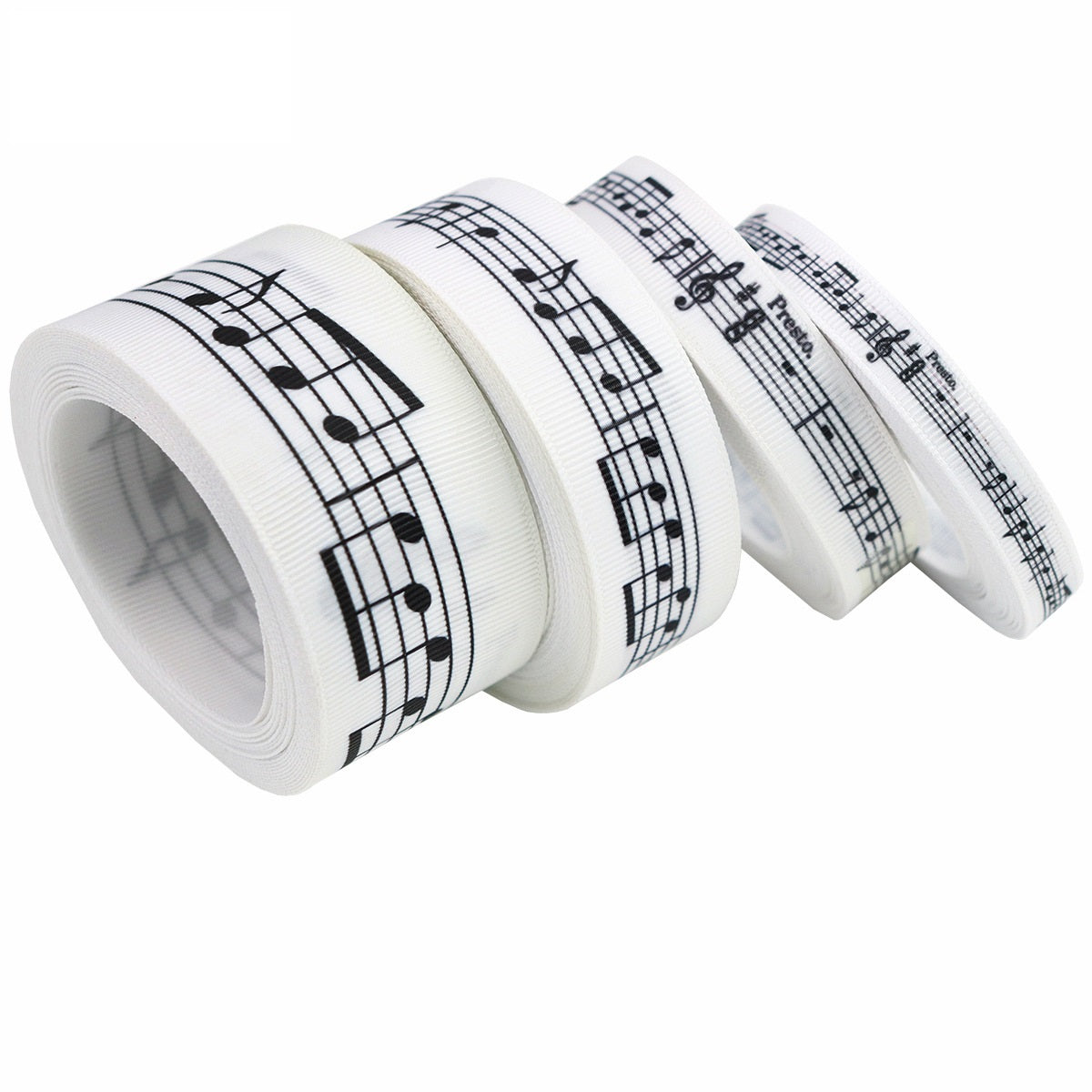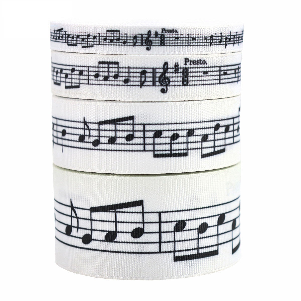 10/16/25/38MM Stuha s notovým zápisem - Černobílá grosgrainová stuha s hudebními notami, balení 4 velikostí