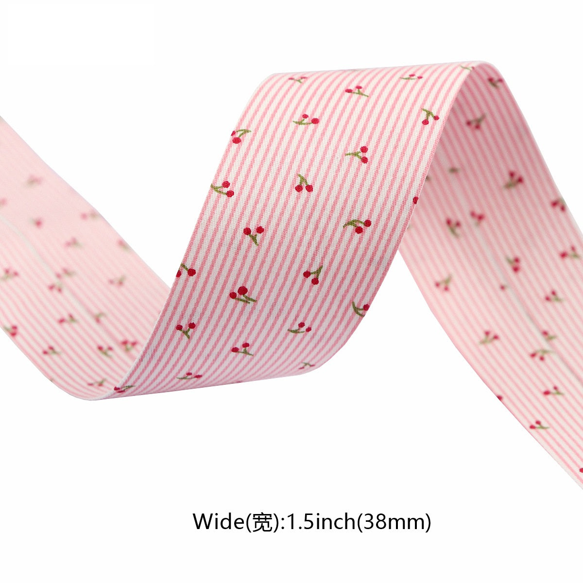 10/25/38MM růžová stužka s třešňovým proužkem pro mazlíčky 10M 10,9 yardů