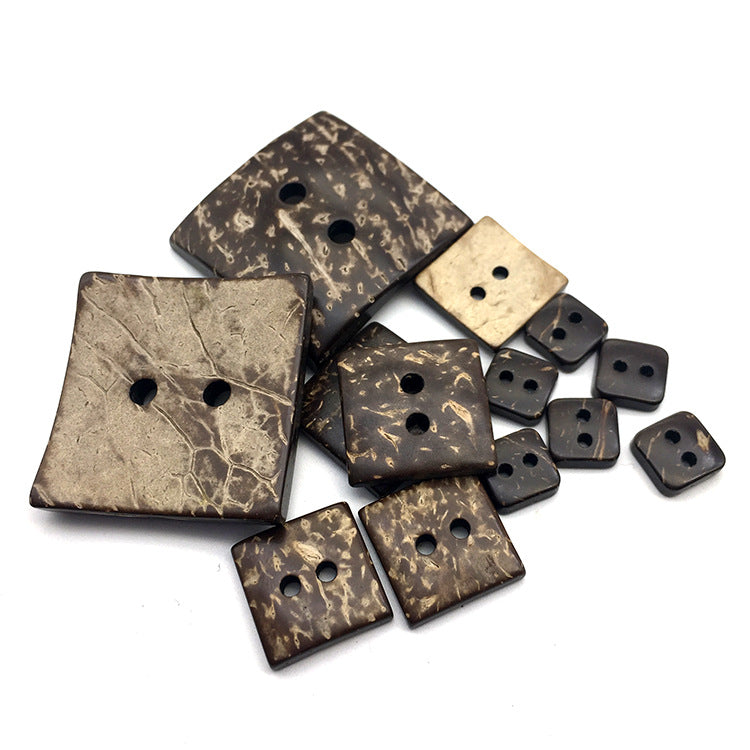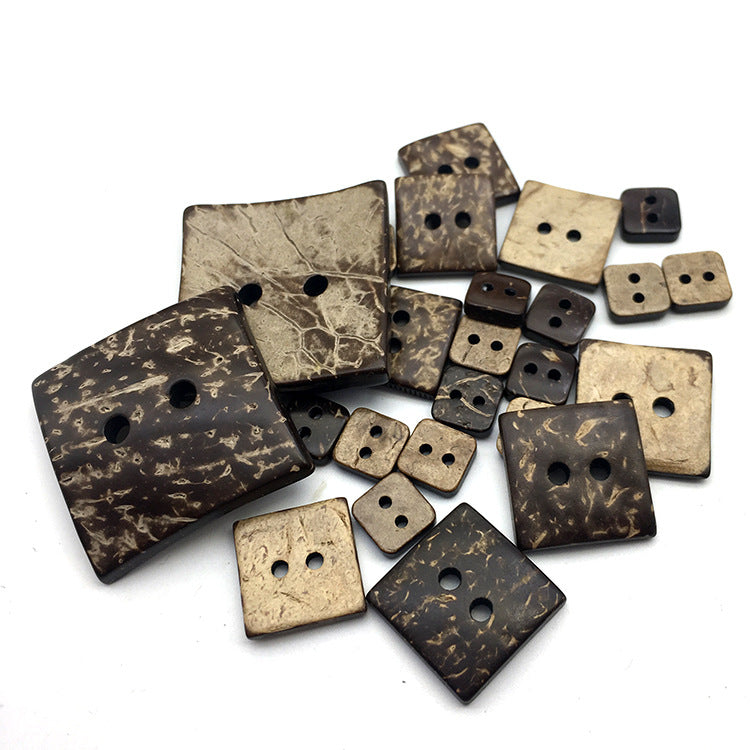 10-54mm Extra velké čtvercové knoflíky z kokosové skořápky se dvěma dírkami 30 ks