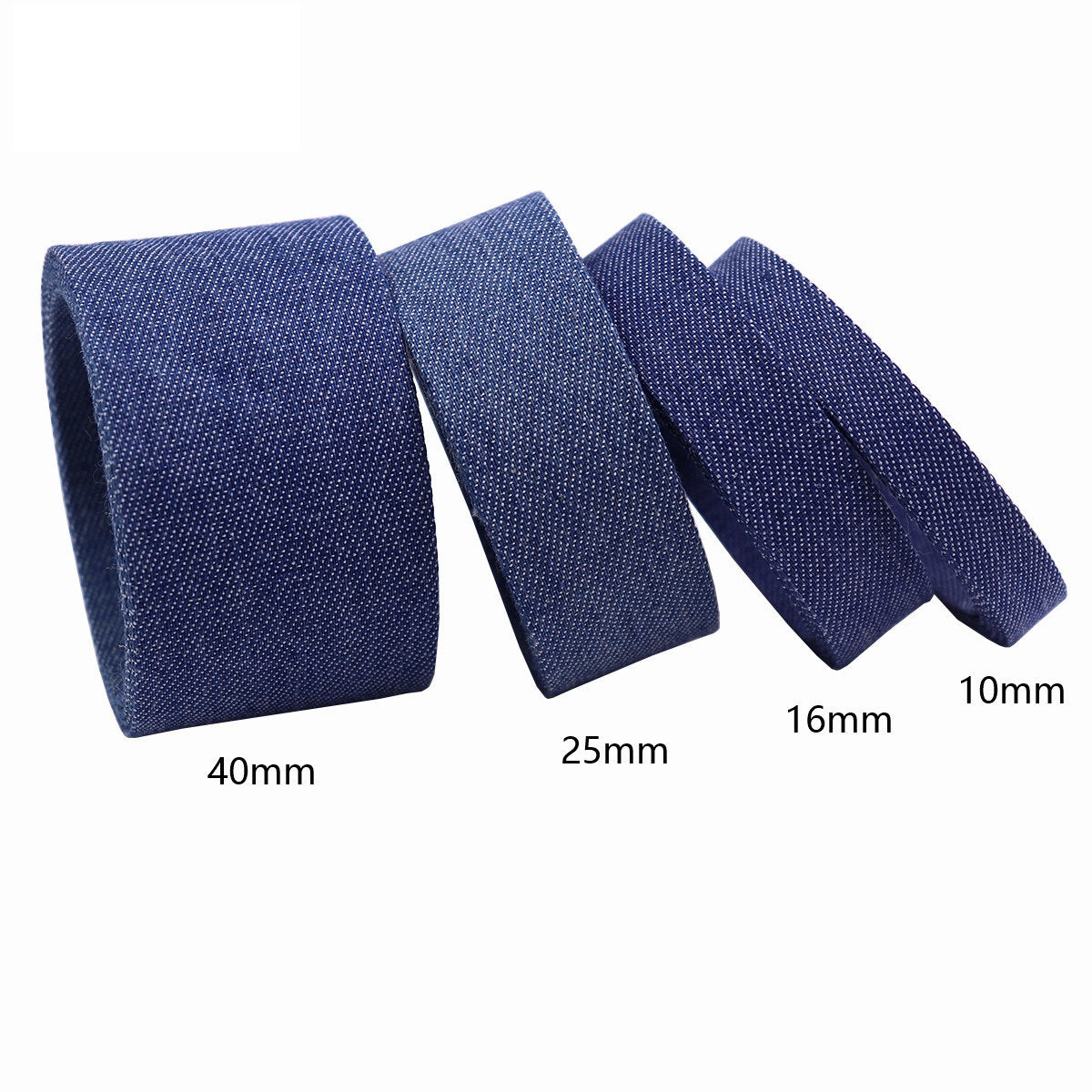 10mm/16mm/25mm/40mm Denimová látková lemovací stuha 10 yardů