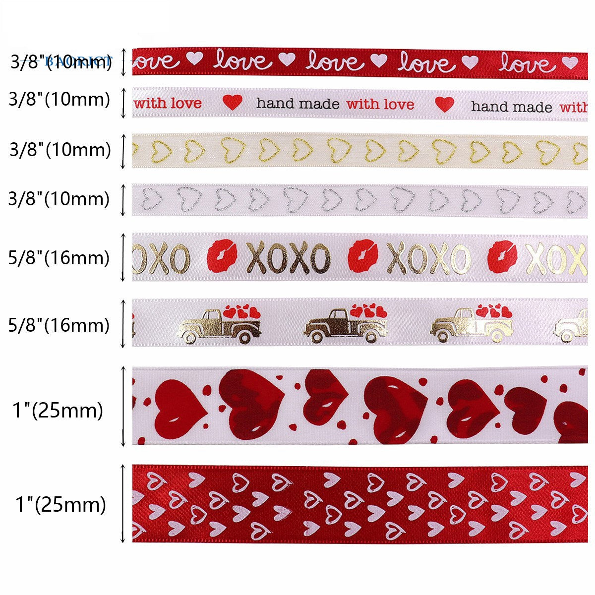 10mm/16mm/25mm XOXO Červené rty Srdce Stuha s horkou ražbou 8 balení 40 yardů (5 yardů na barvu)