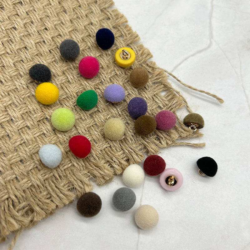 Tyto 10mm knoflíky jsou vyrobeny z pryskyřice s flokovaným povrchem, mají tvar roztomilých hub a jsou k dispozici v různých barvách. Jsou vybaveny kovovými nožičkami, které zvyšují jejich odolnost a zajišťují stabilní upevnění. Ideální pro zdobení pletených oděvů, jako jsou svetry a kardigany. Flokovaný povrch dodává měkký a texturovaný vzhled, přidávající nádech luxusu a kouzla. Jejich malá velikost a živé barvy je činí perfektními pro vytváření jemných a poutavých detailů. Ať už jsou použity střídmě nebo v vzoru, tyto knoflíky mohou proměnit jednoduchý pletený oděv v stylový a jedinečný kousek.