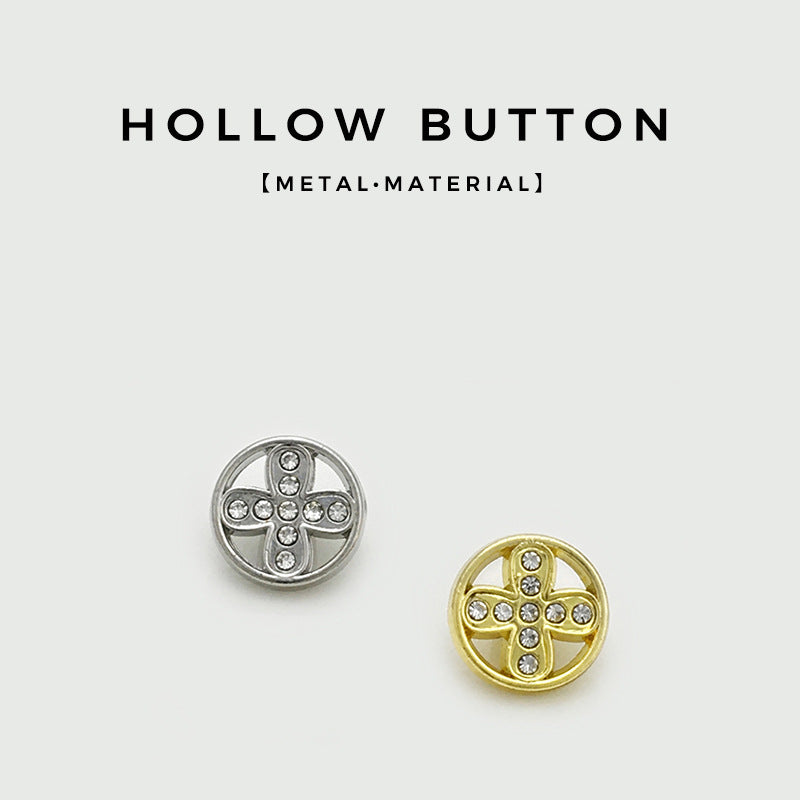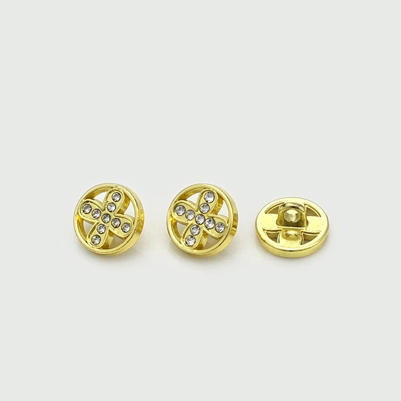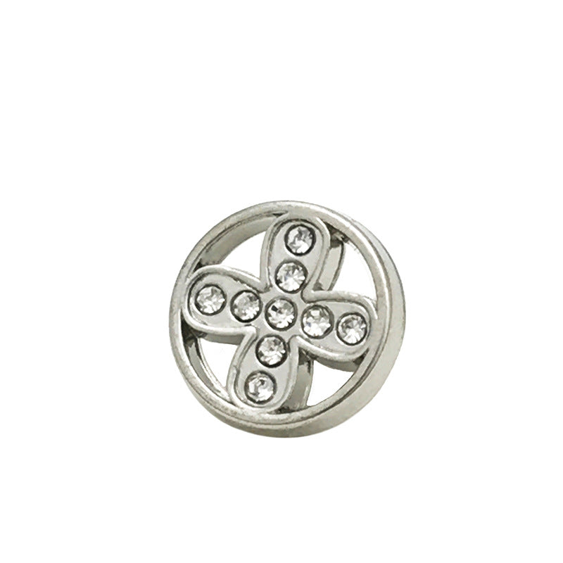 10mm zlaté a stříbrné kulaté kovové knoflíky se čtyřlístkem a diamantovou vsadkou 30ks