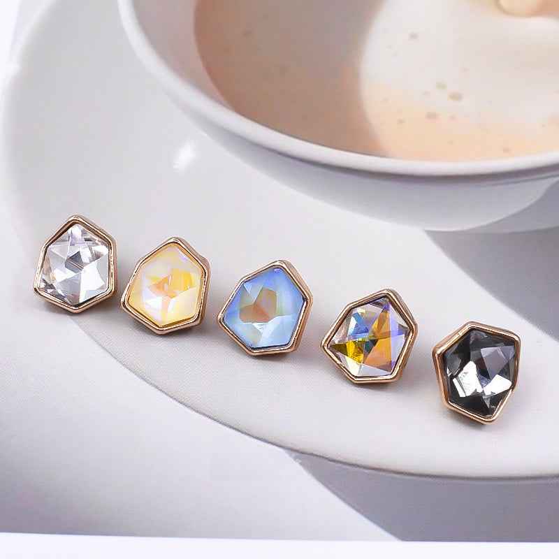1. Okouzlující nepravidelné tvary – Unikátní asymetrické designy s třpytivými kamínky v 8 živých barvách (světle žlutá, fialová, světle fialová, růžová, bílá, modrá, modrožlutá, černá)