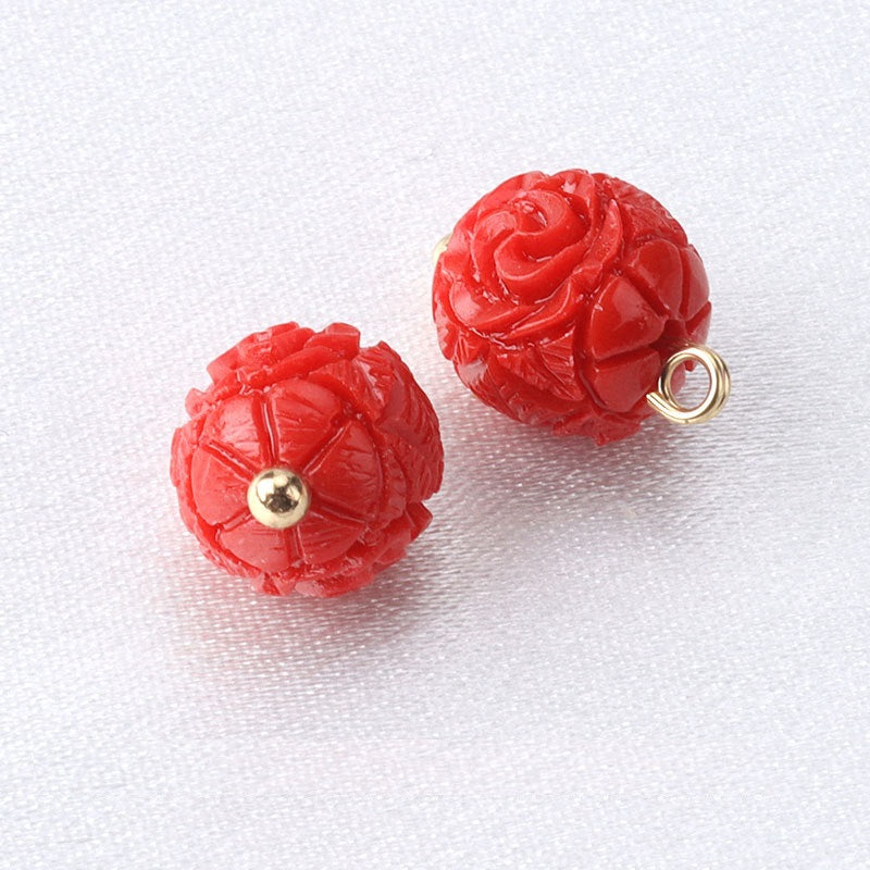 10mm růžová květinová tlačítka z pryskyřičných korálků se zlatými nýty pro knoflíky na cheongsam, nový čínský retro styl Hanfu a košile 12ks