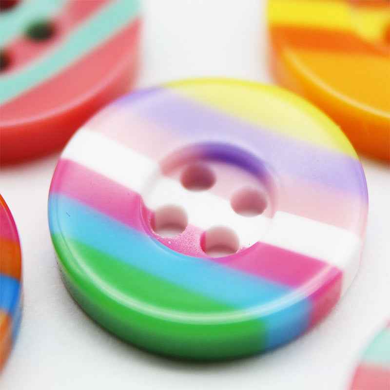11/12/15/18mm široké okraje čtyřdírkové pruhované barevné pryskyřičné knoflíky 100ks