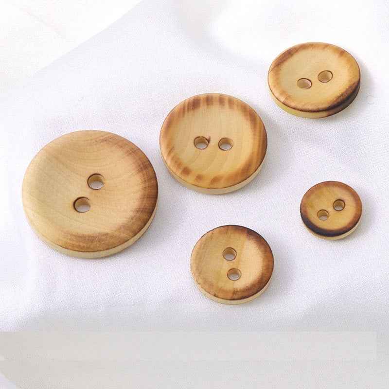 11.5-25mm Ohnivě spálené kulaté knoflíky z buksusu se 2 dírkami pro dětské oblečení
