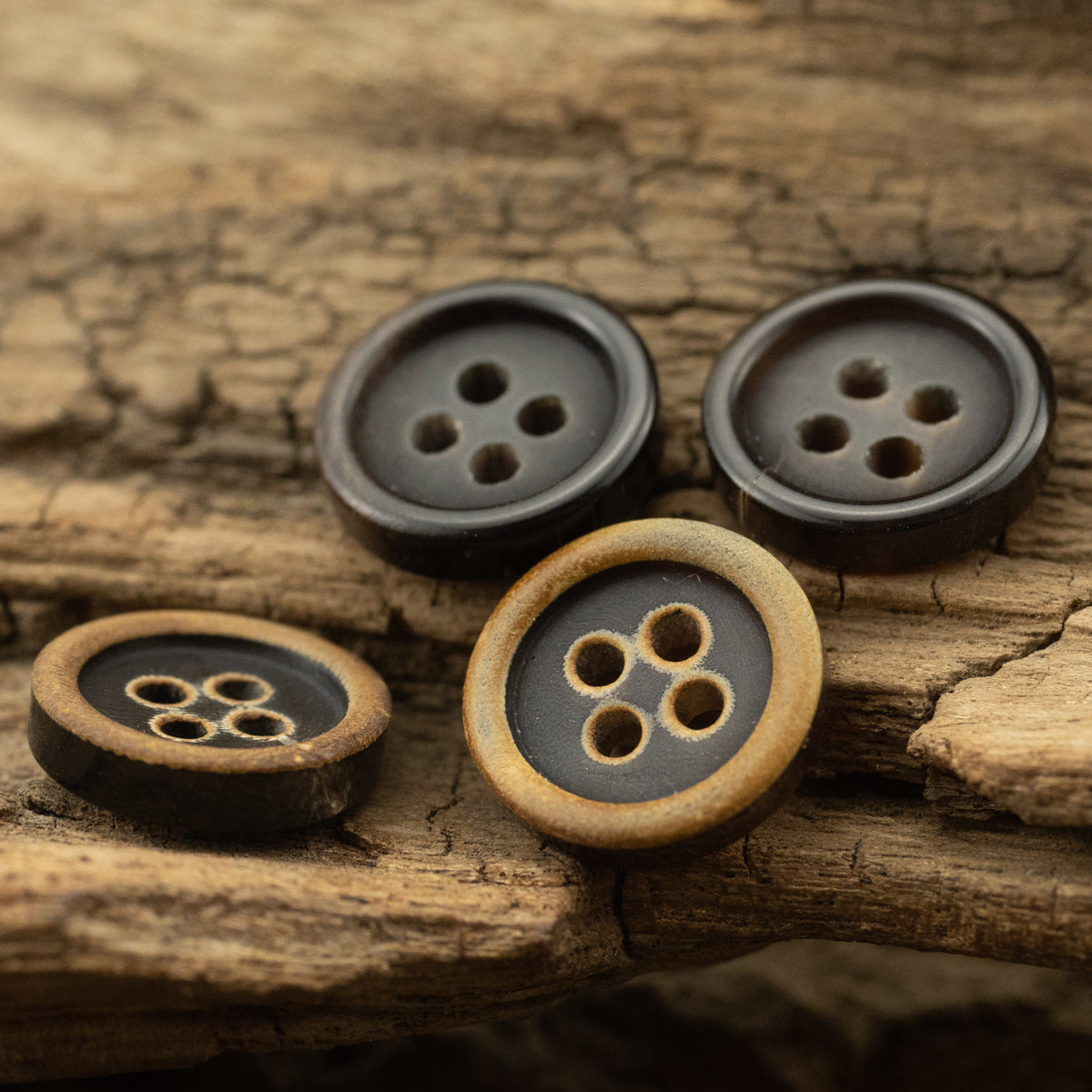 11.5mm spálené tmavé kávové a černé rohové knoflíky pro polokošile 10 ks
