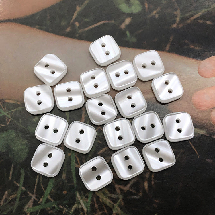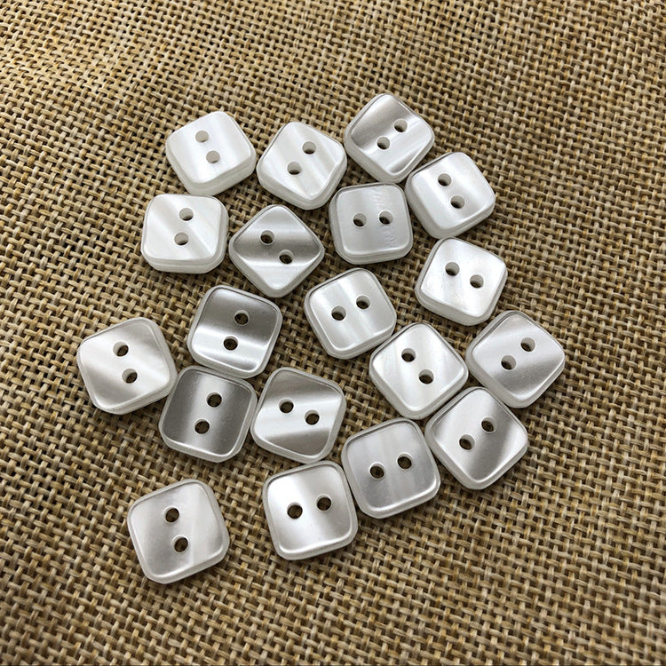 11.5mm perleťově bílé čtvercové průhledné knoflíky na košile z pryskyřice se 2 dírkami 100 ks