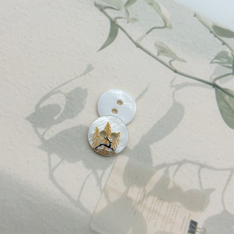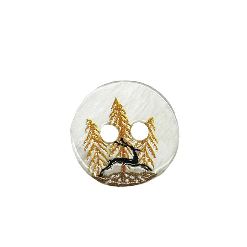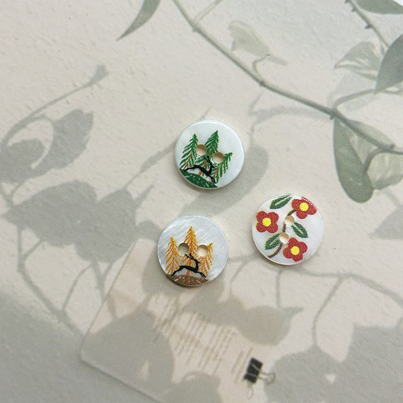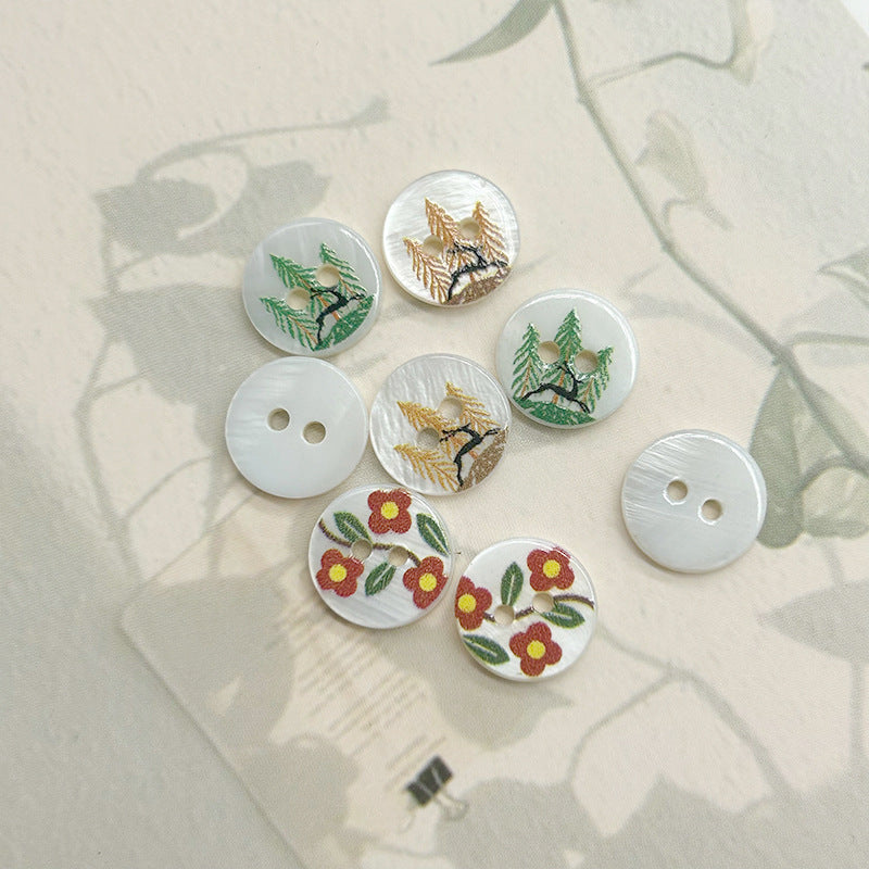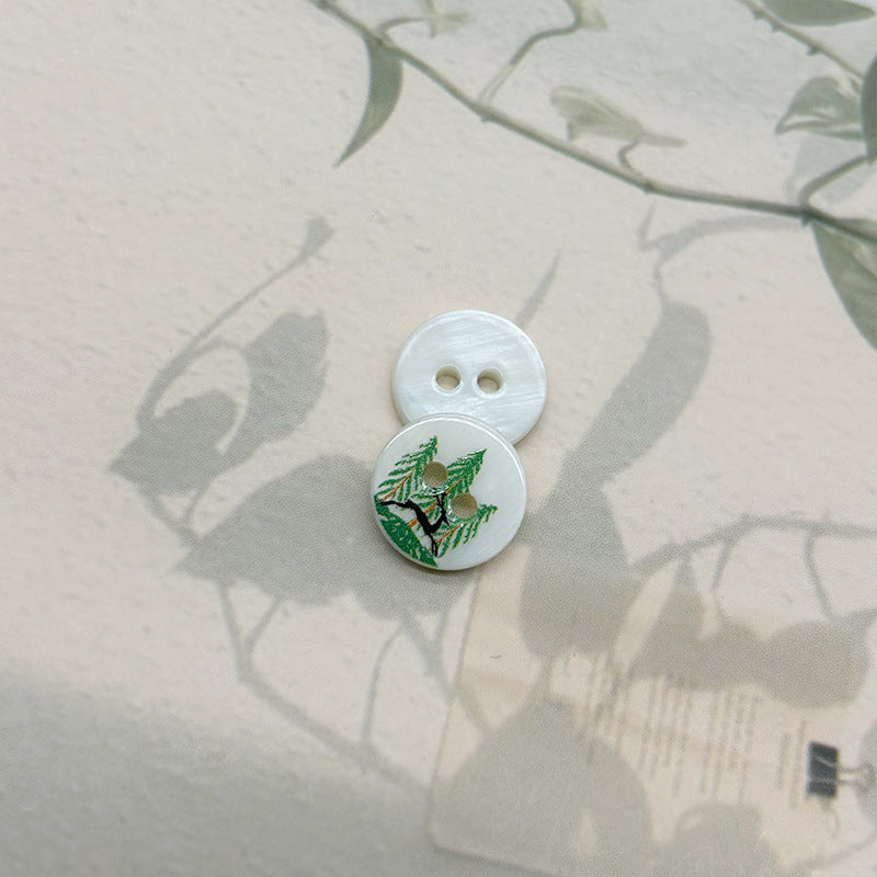 11.5mm červený květ zelený list jelen v lese dvoudírkové knoflíky z mušle 30 ks
