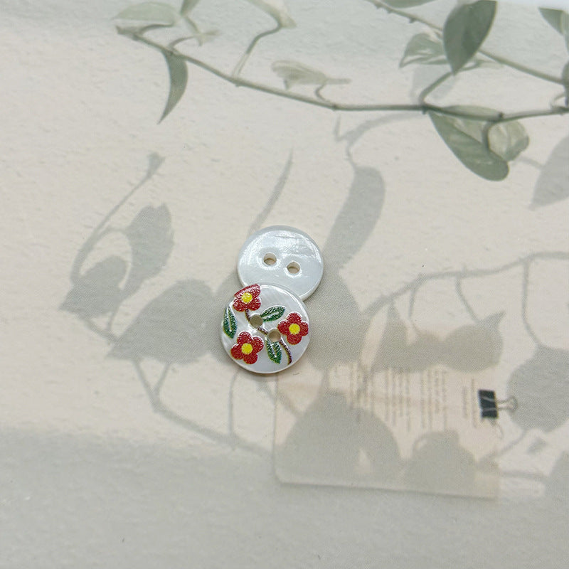 11,5mm červené květinové a zelené listové knoflíky s jelenem v lese - dvoudírkové perleťové knoflíky pro zdobení dámských košil 30ks