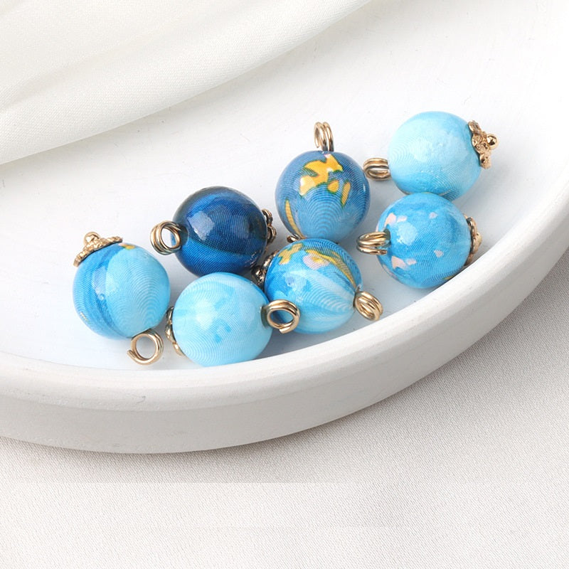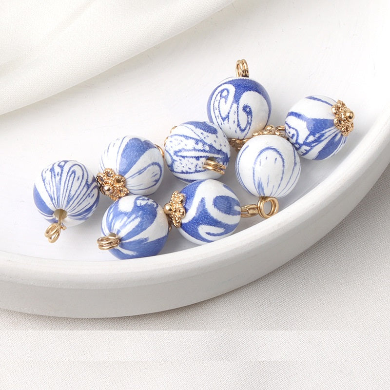 11mm barevné modré keramické korálky čínské žabí knoflíky pro hedvábné qipao 12ks