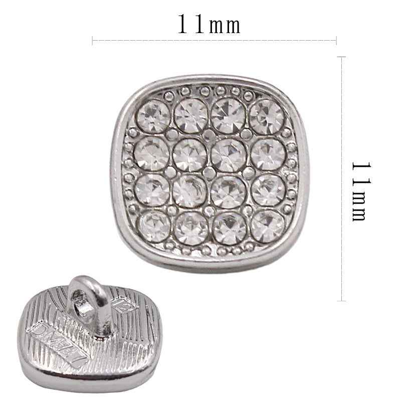 10mm/11mm čtvercové kovové knoflíky s kamínky – elegantní ozdoby pro šití & řemesla 20ks