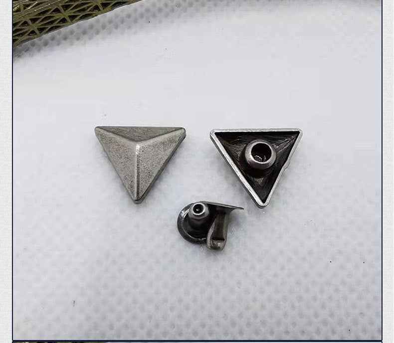 Přidejte geometrický nádech svým výtvorům s těmito vintage trojúhelníkovými nýty! Tyto dekorativní nýty ze zinkové slitiny obsahují: