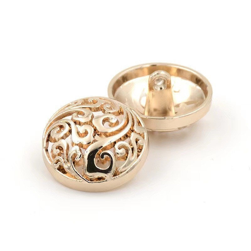 Tyto knoflíky o velikosti 12-25 mm jsou skvělým projevem vintage čínského palácového kouzla. Kov je pečlivě zpracován do dutého vzoru mraku, který je v čínské kultuře symbolem štěstí a elegance. Díky připevněným očkům jsou vhodné k přišití na různé oděvy, jako jsou tradiční čínské kostýmy, cheongsamy nebo moderní šaty a bundy s orientálním nádechem. Retro design a jemné zpracování knoflíků nejenže poskytují praktickou funkci zapínání, ale také proměňují oděv v umělecké dílo. Přidávají nádech tajemství a sofistikovanosti, díky čemuž nositel vyniká jedinečným a kulturně bohatým stylem, ať už na formální události nebo v každodenní módě.