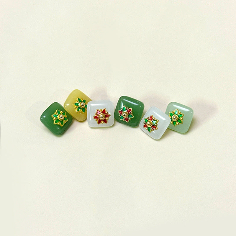 Tyto 12mm knoflíky jsou dokonalým doplňkem tradičního čínského oblečení. Čtvercový tvar s květinovým podstavcem vytváří elegantní a jemný vzhled. Vyrobeny ze skla napodobujícího jadeit, mají lesklou a hladkou texturu, připomínající vzácný nefrit. Ideální pro Tang obleky a Hanfu, přidávají nádech autenticity a vytříbenosti. Knoflíky jsou pečlivě zpracovány, aby zajistily odolnost a vysoce kvalitní vzhled. Mohou zvýraznit celkovou estetiku oděvu, čímž jej učiní půvabnějším a v souladu s jedinečným kouzlem čínského stylu, vhodné pro různé formální a poloformální příležitosti.