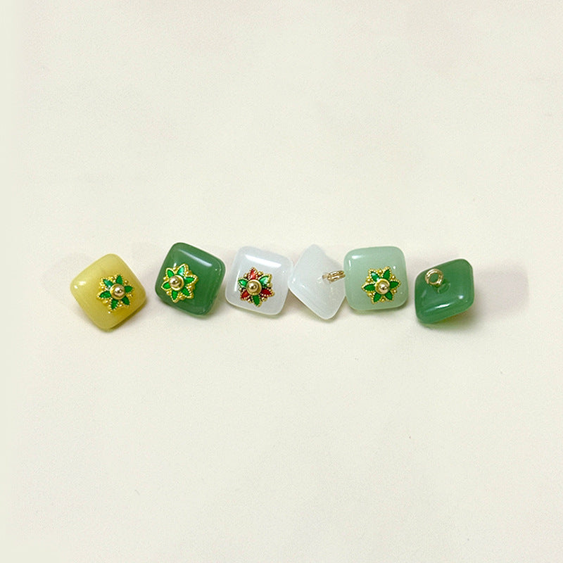 12mm čínské čtvercové skleněné knoflíky napodobující jadeit s květinovým podstavcem pro Tang oblek a Hanfu 50ks