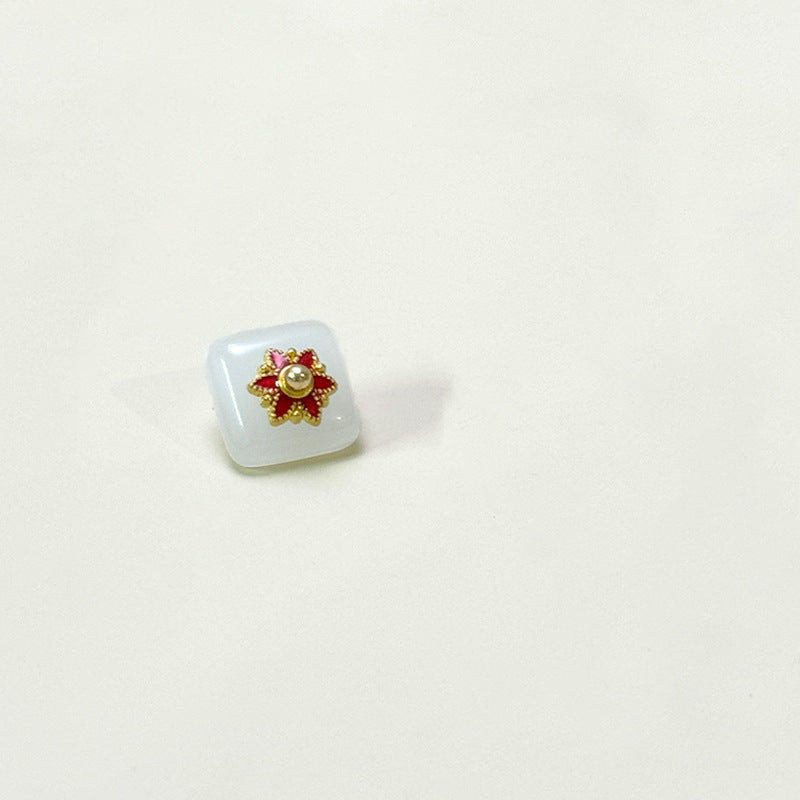 12mm čínské stylové čtvercové skleněné knoflíky s květinovým základem pro Tang oblek Hanfu 50ks