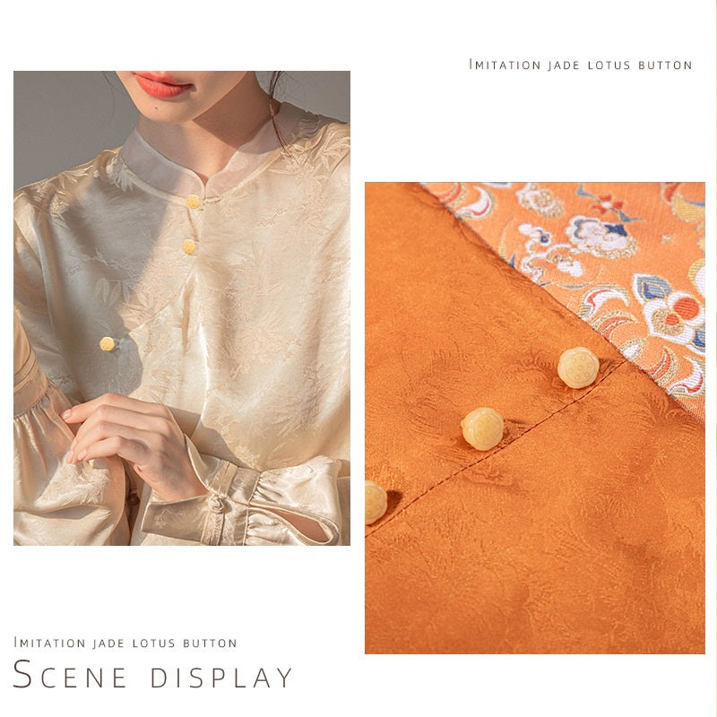 Tyto knoflíky z imitace nefritu ve tvaru lotosového semeníku jsou krásným doplňkem každého tradičního čínského oděvu. Díky realistickému designu lotosového semeníku a vzhledu nefritu vyzařují eleganci a starobylost. Perfektní pro šaty cheongsam a kostýmy Hanfu, tyto knoflíky přidávají šarm a autenticitu.