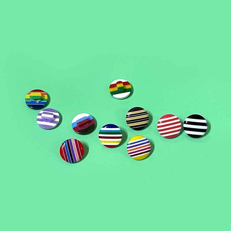 14mm barevné pruhované kulaté pryskyřičné knoflíky s očky pro zdobení dětských košil, svetrů a kardiganů, balení 50 ks (10 barev)