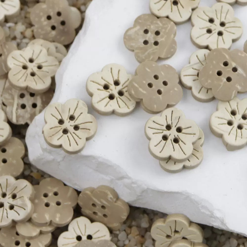 15/17,5mm Květinové Tvarované 4 Dírové Přírodní Knoflíky z Kokosové Slupky 100ks