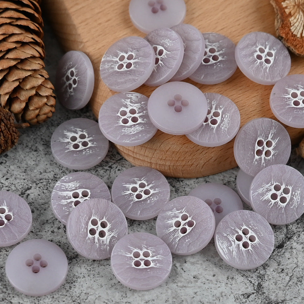 Tyto uretanové knoflíky, dostupné ve velikostech 15 mm, 20 mm a 25 mm s kulatým tvarem a čtyřmi dírkami, jsou k dispozici v řadě výrazných barev včetně černé, nebeské modré, růžové a fialové.