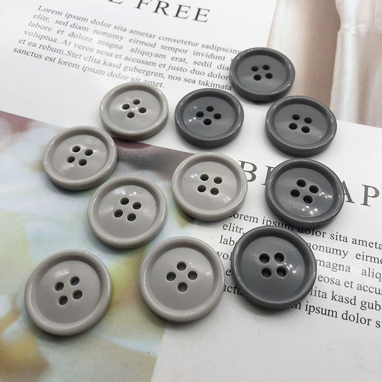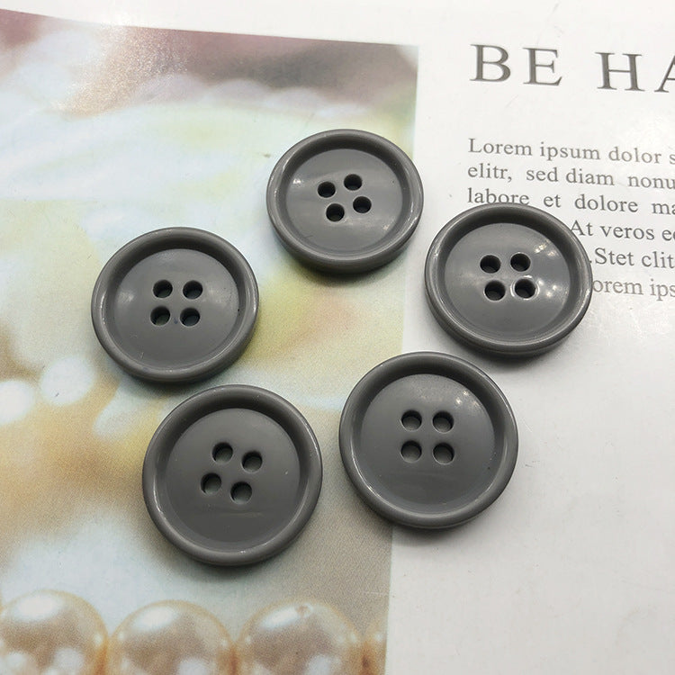 15/20mm Tmavě šedé kulaté knoflíky z pryskyřice na oblek a kalhoty se 4 dírkami