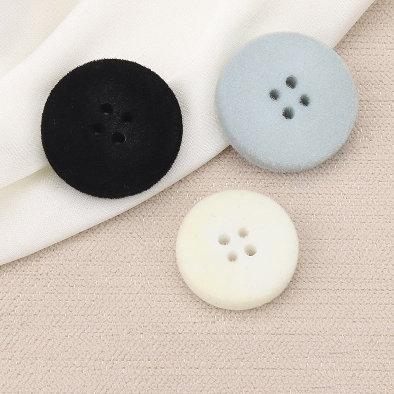 Tyto flokované knoflíky jsou k dispozici ve třech stylových barvách - bílé, černé a modré, s velikostmi od 15 do 25 mm. Plochý design jim dodává elegantní a moderní vzhled, zatímco čtyři dírky usnadňují přišívání na různé oděvy. Flokování přidává měkkou a luxusní texturu, která zvyšuje jejich vizuální přitažlivost. Ať už pracujete na šatech, blůze nebo jiném oděvu, tyto knoflíky mohou být dokonalým závěrečným detailem. Nejsou jen dekorativní, ale také odolné, což zajišťuje, že zůstanou na svém místě i po opakovaném používání. Bílá varianta nabízí čistý a klasický vzhled, černá přináší nádech elegance a tajemna a modrá dodává barevný akcent. Nechte tyto knoflíky proměnit vaše výtvory svým kouzlem.