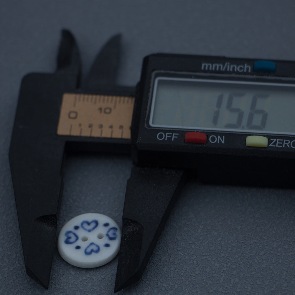 15.6mm kulaté ručně malované modrobílé porcelánové srdcové keramické knoflíky 6ks
