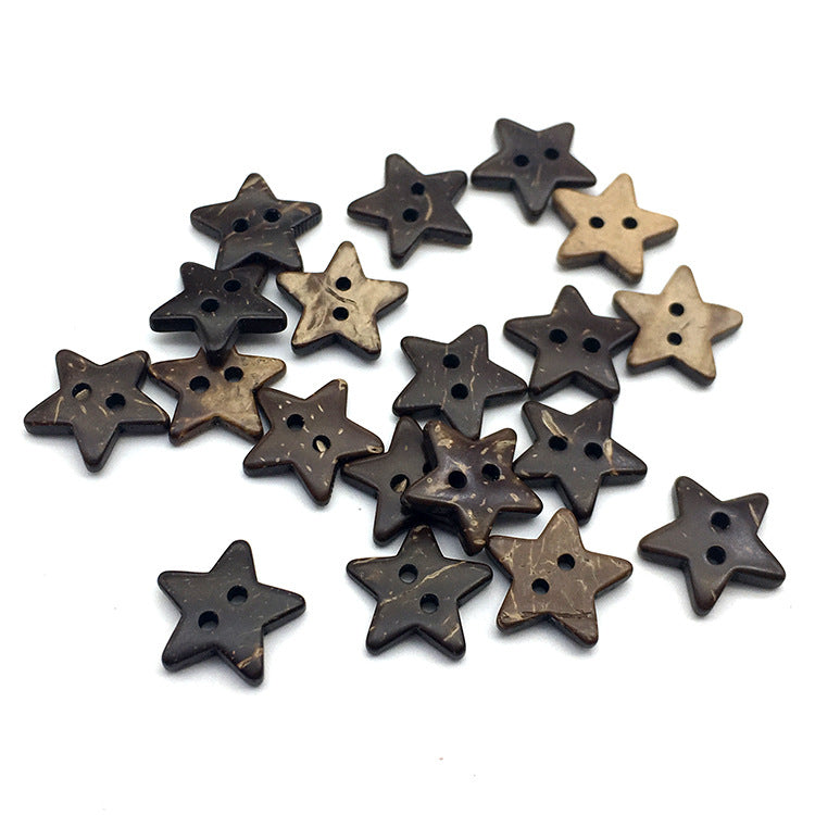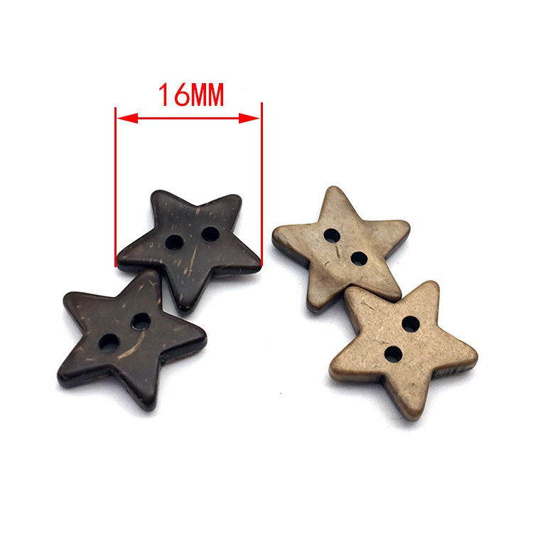 16mm Hnědé Dvouotvorové Hvězdicové Knoflíky z Kokosové Slupky 50ks