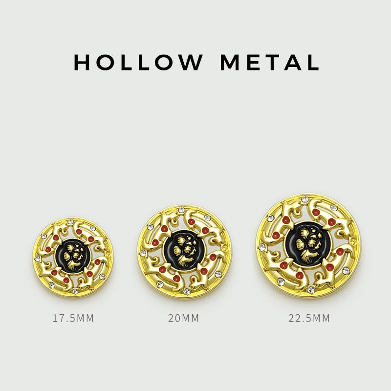 Vylepšete svůj šatník našimi 17,5/20/22,5mm čínskými zlatými a stříbrnými dutými kovovými knoflíky s korálky. Tyto knoflíky mají okouzlující dutý design, zdobený třpytivými korálky, které dodávají nádech elegance a sofistikovanosti. Vyrobeny z vysoce kvalitního kovu, jsou k dispozici ve zlatém a stříbrném provedení, ideální pro různé košile, kabáty a bundy. Díky své odolné konstrukci a poutavému designu jsou tyto knoflíky ideální volbou pro ty, kteří oceňují tradiční řemeslnou práci a jedinečné módní doplňky.