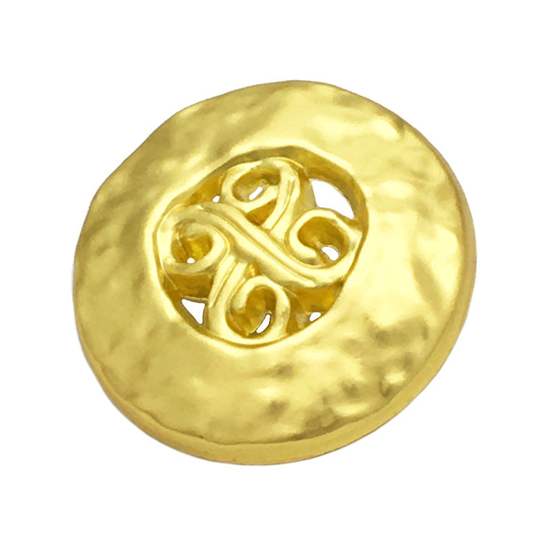 Vylepšete svůj šatník našimi 17.5/22.5mm zlatými vintage kovovými knoflíky s reliéfem. Tyto knoflíky mají okouzlující vintage design, jsou vyrobeny z vysoce kvalitního kovu se zlatým povrchem. Reliéfní povrch dodává každému oděvu nádech elegance a sofistikovanosti. Perfektní pro bundy, kabáty a pletené oblečení, tyto knoflíky jsou univerzálním doplňkem jak pro neformální, tak formální oblečení. Díky své odolné konstrukci a poutavému designu jsou ideální volbou pro ty, kteří oceňují tradiční řemeslnou práci a jedinečné módní doplňky.