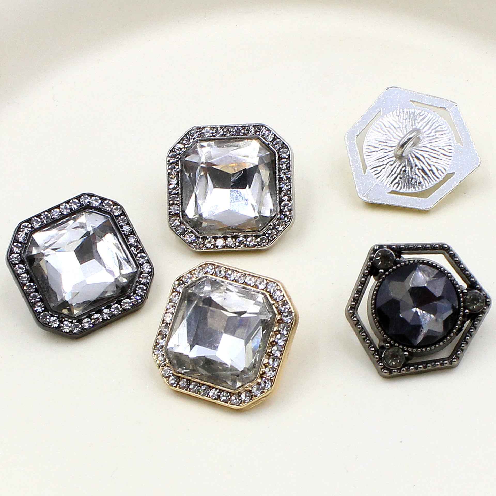 Každý knoflík má hladkou základnu z kovové slitiny s pevně ručně přišitým upevněním, což zajišťuje odolnost a snadné použití. Třpytivé krystalové ozdoby krásně zachycují světlo a vytvářejí luxusní vzhled. Ideální pro módní návrháře, řemeslníky a nadšence DIY, kteří hledají vysoce kvalitní a stylové knoflíky.