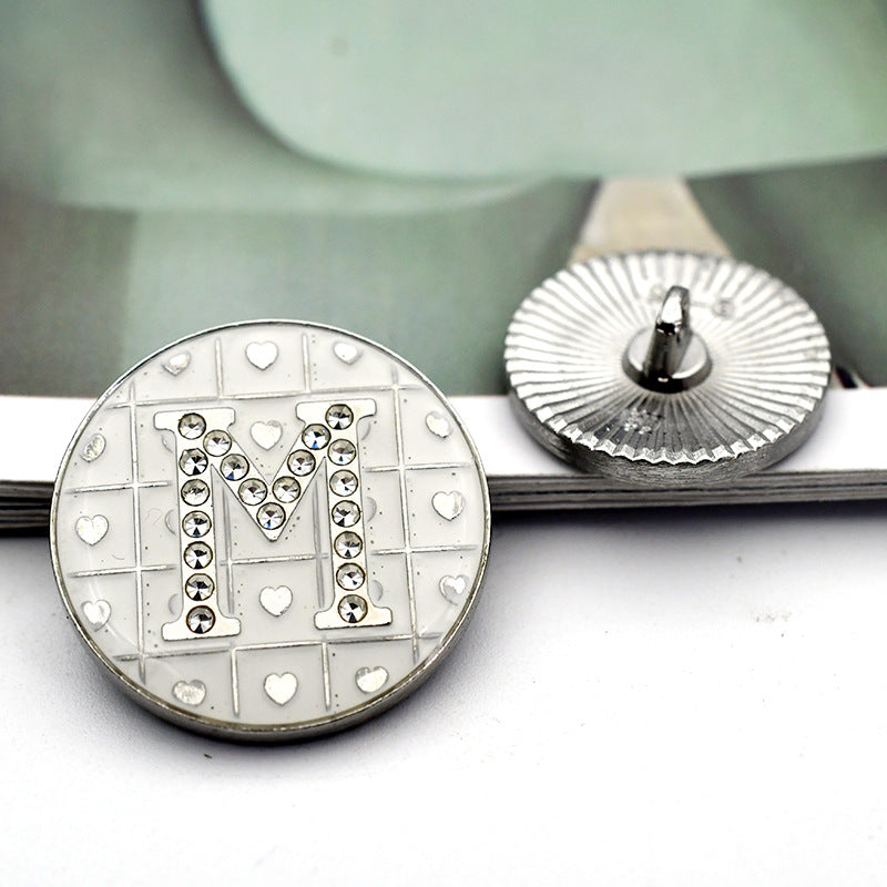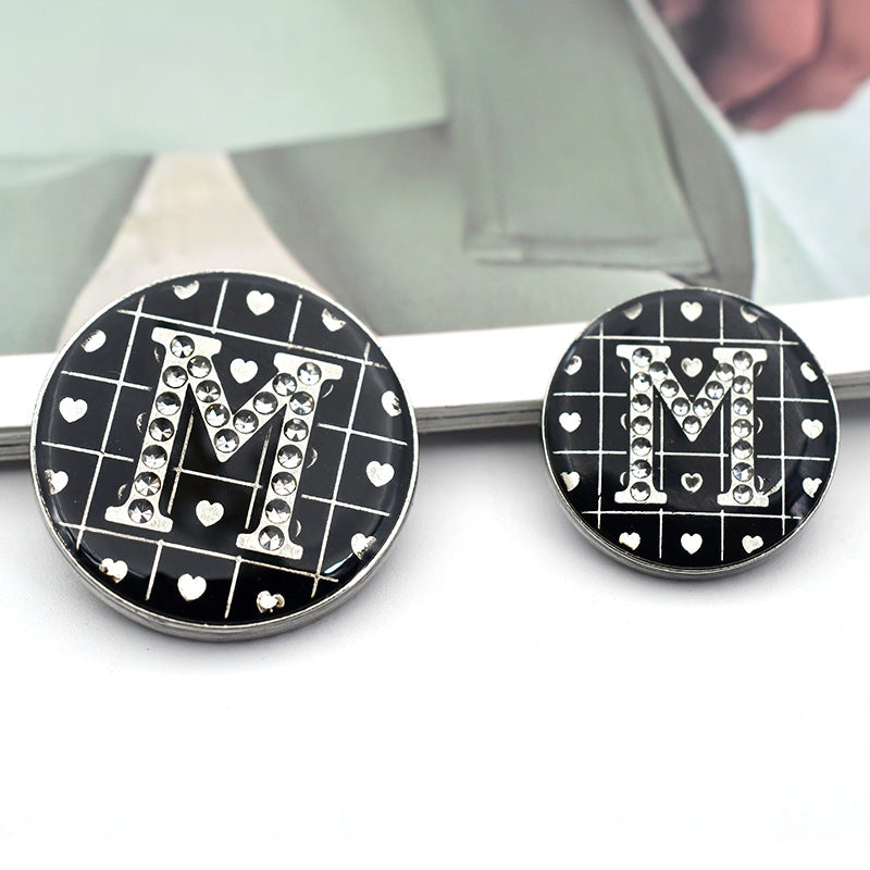 18/23mm černé bílé kulaté knoflíky BDMV Letter Rhinestone s kovovým dříkem 12ks