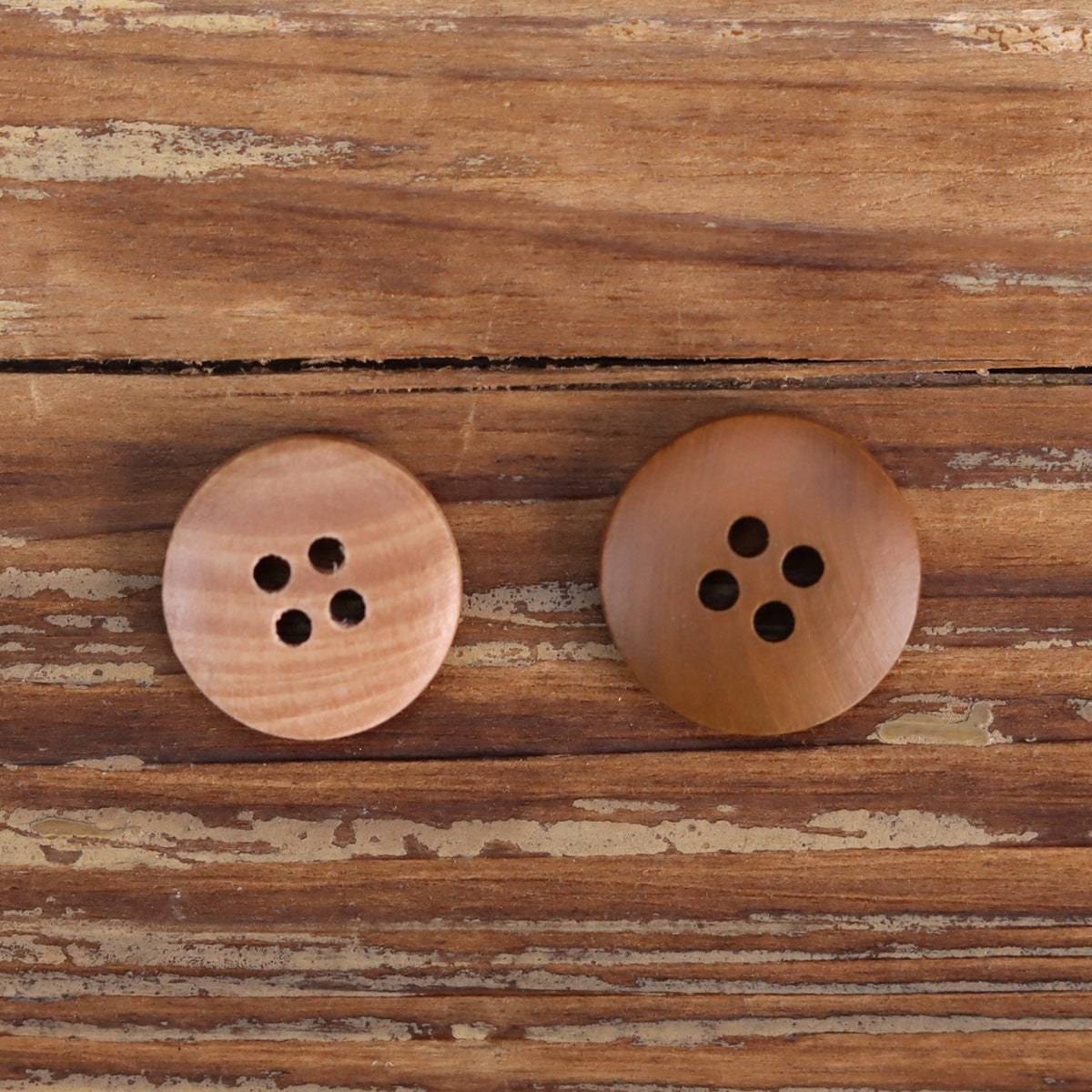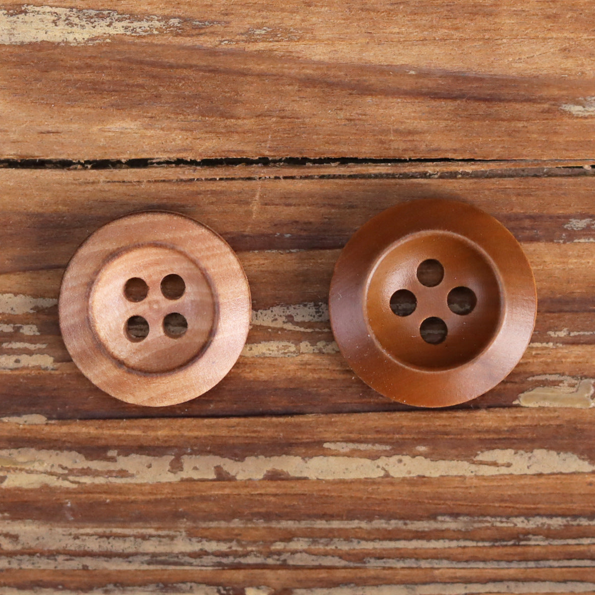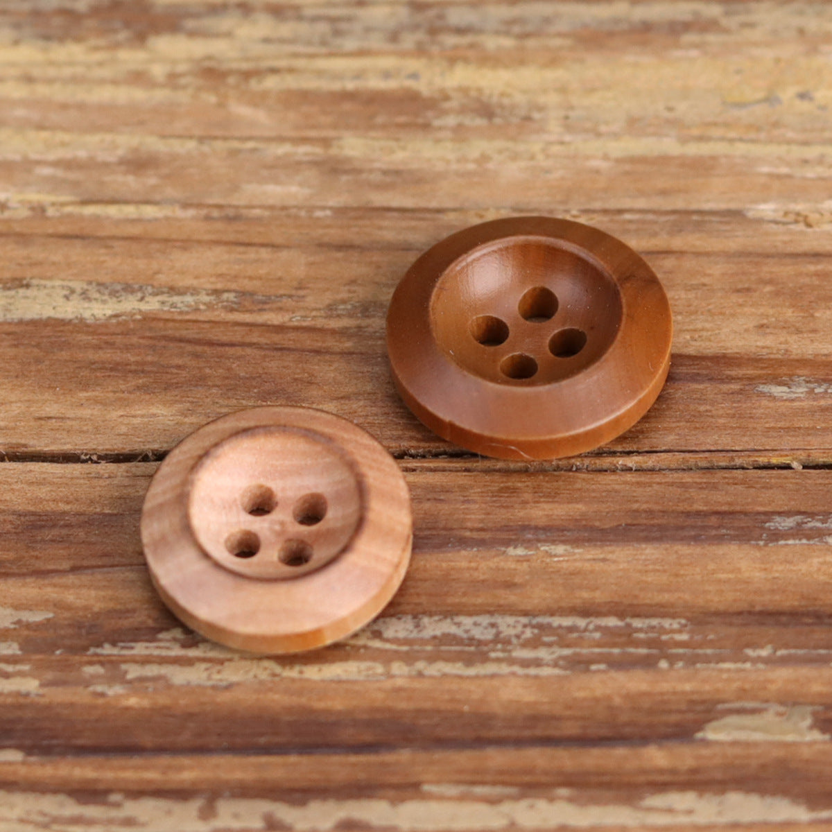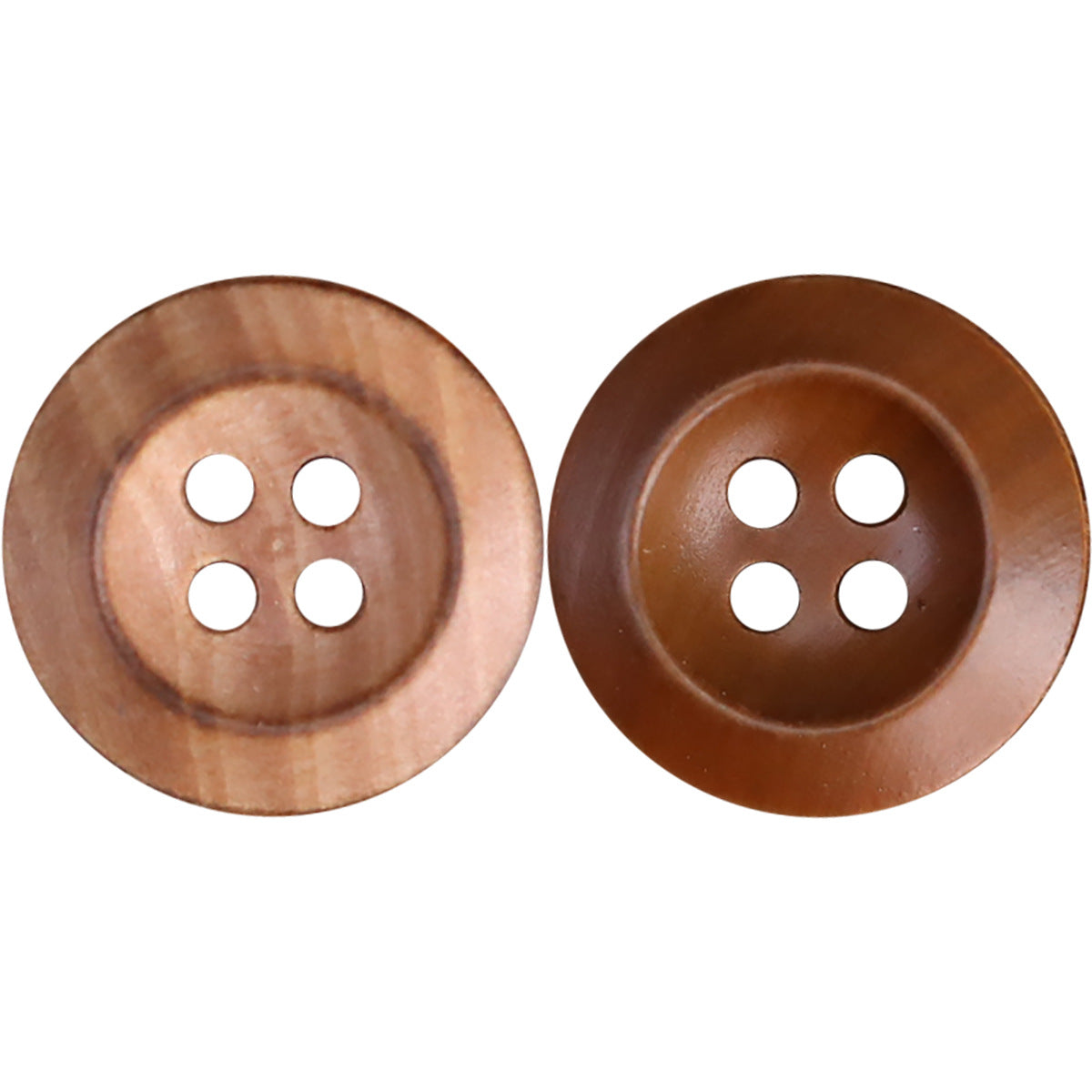 18-24L přírodní dřevěné knoflíky s vypálenými okraji, hnědé zkosené, kulaté, čtyřdírkové pro bavlněné-lněné košile a dětské svetry, balení 40 ks (2 barvy)