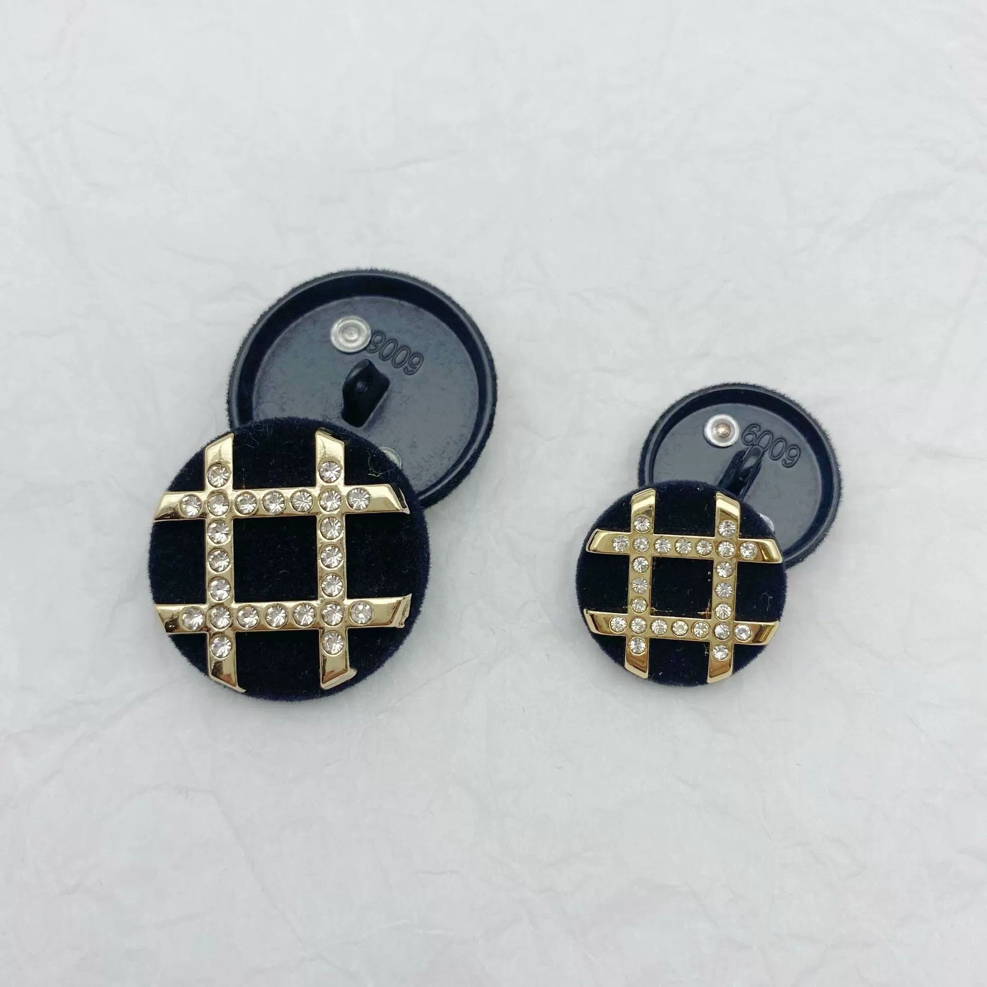 18/25mm Černé sametové kovové knoflíky s korálky na svetry 50 ks