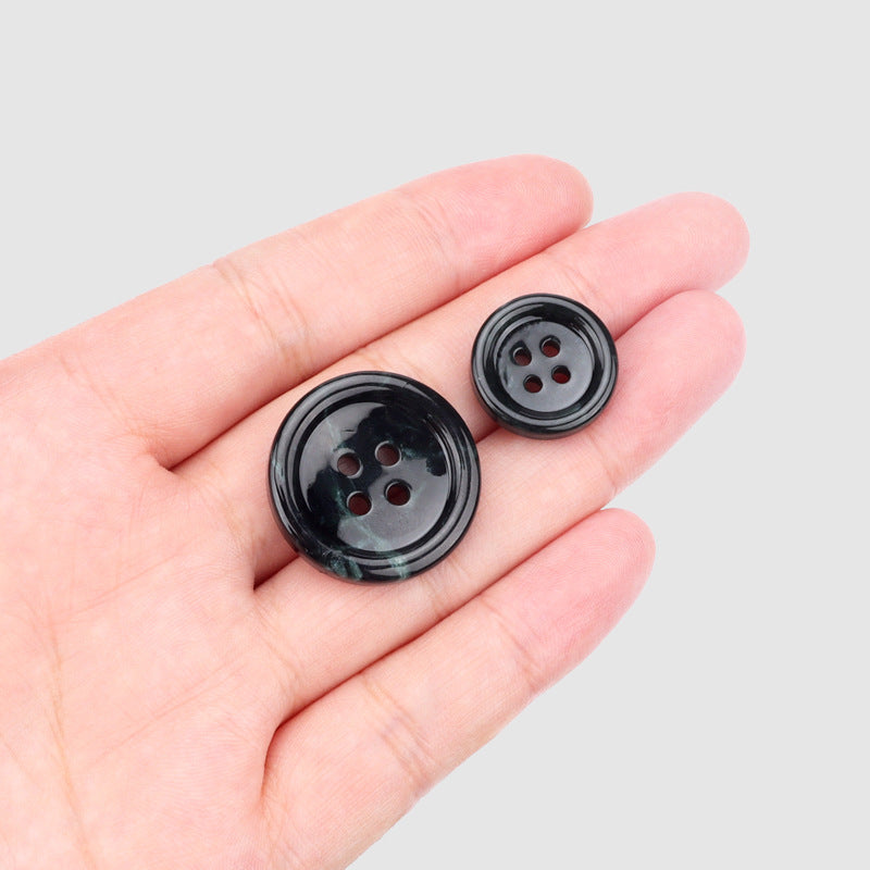 Tyto 18/25mm knoflíky jsou vyrobeny z přírodního nefritu Xiuyan v okouzlujícím kulatém tvaru. Hluboká tmavě zelená barva vyvolává pocit luxusu a tajemství. Se čtyřmi dírkami jsou navrženy tak, aby se snadno a stabilně připevnily k různým oděvům.